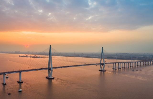 以杭州灣跨海大橋為例,這座連接浙江嘉興與寧波的跨海大橋,以36公里的長度成為世界上最長的跨海大橋。大橋蜿蜒曲折,給人的視覺震撼自不必說,尤其等到夜間,橋上亮起星星點(diǎn)點(diǎn)的燈光,在壯闊大海的映襯下更為壯觀。